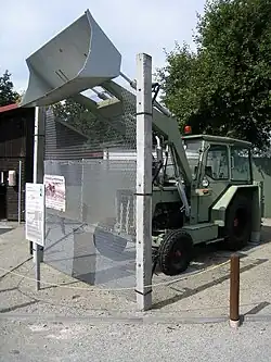 ![]() Sinal de aviso de fronteira do lado da Alemanha Ocidental e instalações da Alemanha Oriental em Schlagsdorf, Mecklemburgo-Pomerânia Ocidental | |