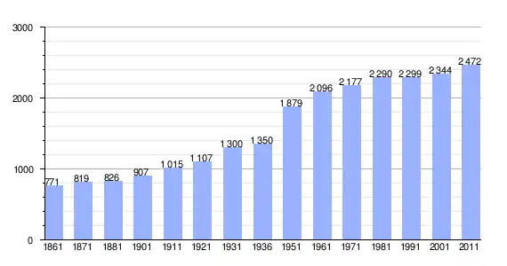 | Variação demográfica do município entre 1861 e 2011[3] |
