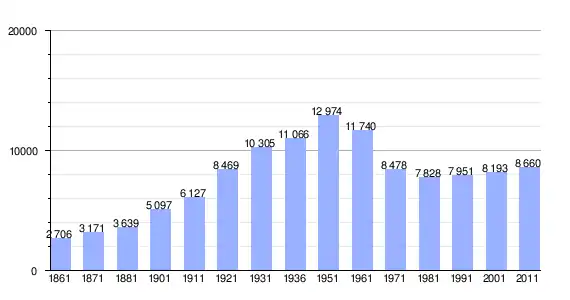 | Variação demográfica do município entre 1861 e 2011[3] |