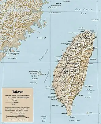 A ilha Formosa, ou de Taiwan é a principal ilha da área livre da República da China. Situa-se a cerca de 200 km da costa sudeste do continente, separada deste pelo estreito de Formosa, com o Mar da China Oriental a norte, a mar das Filipinas a leste, o estreito de Lução a sul e o Mar da China Meridional a sudoeste. A ilha é caracterizada pelo contraste entre os dois terços orientais, que consistem principalmente de montanhas escarpadas, divididas em cinco cordilheiras entre as extremidades norte e sul da ilha, e o terço ocidental, composto por planícies e terreno pouco ondulado, área onde se aglomera a maioria da população da ilha. O ponto mais elevado da ilha é o Yu Shan, com 3 952 m.