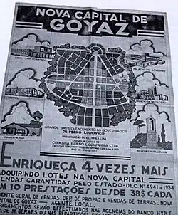 O local da nova capital, cujo projeto foi lançado em 24 de outubro de 1933, foi escolhida tendo como critérios melhores condições hidrográficas, topográficas, climáticas e pela proximidade da estrada de ferro.[29] Em 7 de novembro de 1935, a mudança provisória da nova capital goiana foi iniciada. A futura capital se chamaria Goiânia. Em 23 de março de 1937, o Decreto n° 1.816 transfere definitivamente a sede do governo estadual da cidade de Goiás para Goiânia, a qual, cinco anos depois, já registrava 15 mil habitantes, atraídos principalmente do norte de Goiás e de estados próximos, como Minas Gerais, Piauí, Bahia e Maranhão.[25]