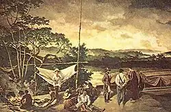 Uma das bandeiras mais conhecidas e importantes recebidas pelo território goiano foi a de Bartolomeu Bueno da Silva em 1682, pioneira em encontrar ouro nessas terras, em pequena quantidade. Essa expedição explorou uma área entre as margens do Rio Araguaia até a região do atual município de Anhanguera. Bueno da Silva se interessou pelo ouro que adornava algumas mulheres indígenas de uma tribo e, sem conseguir encontrar informações confiáveis sobre a localização das jazidas, ameaçou pôr fogo nas fontes d’água da região, utilizando-se de aguardente para convencer os indígenas de que tinha tal poder, assim recebendo o apelido Anhanguera (“diabo velho” ou “feiticeiro”).[18]