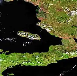 Imagem de satélite do golfo de Gonâve. No centro da imagem vê-se a ilha de la Gonâve.