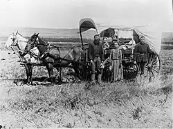 A Lei da Propriedade Rural (publicada com o nome Homestead Act)[41] de 1862 permitiu aos colonos reclamarem até 160 acres (65 hectares) de terreno, desde que lá vivesse por um período de cinco anos e o cultivasse. Isto foi posteriormente expandido pelo Kinkaid Act[42] passando a incluir uma secção inteira (quadrado com uma milha de lado). Centenas de milhar de pessoas reclamaram para si propriedades destas, por vezes construindo casas de erva usando o próprio solo do terreno que reclamavam. Muitos dos colonos não eram agricultores de sequeiro experientes pelo que os fracassos eram frequentes. Alemães de origem russa que já tinham trabalhado na agricultura em circunstâncias semelhantes, na actual Ucrânia tiveram um sucesso marginalmente superior do que o proprietário rural normal. Uma lei criada para o mesmo fim, a Dominion Lands Act,[43] foi publicada em 1871 no Canadá.