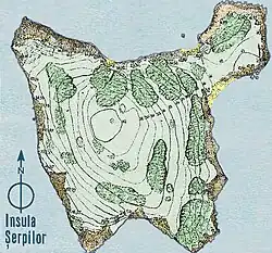 Estando a ilha sob soberania romena durante a Primeira Guerra Mundial, e sendo a Roménia um dos Estados aliados contra a Alemanha, o farol da ilha foi bombardeado em 25 de junho de 1917 pelo cruzador rápido otomano Midilli, que desembarcou marinheiros alemães que ocuparam a ilha durante algumas horas, destruindo o farol e uma estação de comunicações ali instalada. Os romenos reconstruíram o farol em 1922. Em 1932 a ilha foi declarada pela Roménia como reserva natural. Também na década de 1930 a ilha foi estudada pelo arqueólogo Vasile Pârvan, que escavou o lugar do antigo Templo de Aquiles.