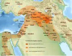 A guerra contra Assur durou vários anos. Temendo que seu exército não conseguisse resistir até o fim, o rei assírio Assur-Ubalite III tentou unir todos os povos sob domínio assírio contra os medos e babilônios. No entanto, na batalha próxima da cidade de Qablin, as forças assírias foram derrotadas. Entre 615 e 612 a.C., as tropas medo-babilônicas conquistaram e saquearam as cidades de Assur, Arbela, Kalat e a capital Nínive. Assim, o temido Império Assírio, outrora uma das potências mais dominantes do Oriente Próximo, colapsou em 604 a.C., com seu território dividido entre a Média e a Babilônia.[90]