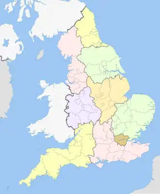 ![]() Localização da Inglaterra (em verde escuro) No Reino Unido (em verde claro) No continente europeu (em cinza escuro) | |