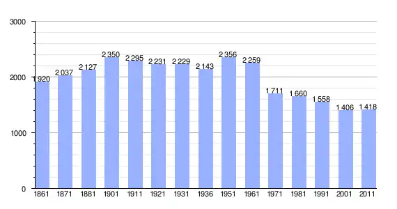 | Variação demográfica do município entre 1861 e 2011[8] |