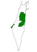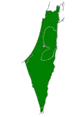 ![]() Localização de Israel (em verde) e dos territórios ocupados por Israel (em verde claro) no globo. | |