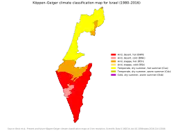 Israel (em hebraico: יִשְׂרָאֵל, Yisra'el; em árabe: إِسْرَائِيلُ, Isrā'īl), oficialmente Estado de Israel (em hebraico: ⓘ, transl. Medīnát Isra'él, pronunciado: [mediˈnat isʁaˈʔel]; em árabe: دولة إسرائيل, Dawlát Isrā'īl, pronunciado: [dawlat ʔisraːˈʔiːl]), é um país localizado no Oriente Médio, ao longo da costa oriental do mar Mediterrâneo. Faz fronteira com o Líbano ao norte, com a Síria a nordeste, com a Jordânia e a Cisjordânia a leste, com o Egito e a Faixa de Gaza ao sudoeste, e com o golfo de Acaba, no mar Vermelho, ao sul.[nota 6] Geograficamente, contém diversas características dentro de seu território relativamente pequeno.[1][21] Israel é definido como um "Estado Judeu e Democrático" em suas Leis Básicas e é o único Estado de maioria judaica do mundo.[22]