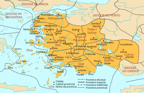 Província da Lícia num mapa da Diocese da Ásia (c. 400)