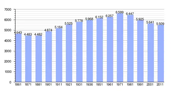 | Variação demográfica do município entre 1861 e 2011[3] |