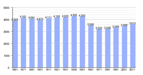 | Variação demográfica do município entre 1861 e 2011[3] |