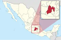 Se limita ao norte com os estados de Querétaro e Hidalgo, ao sul com Morelos e Guerrero; a oeste com Michoacán, a leste com Tlaxcala e Puebla, e rodeia a Cidade do México. Seu nome provém do náhuatl e significa "lugar no centro (ou no umbigo) da lua".[1]