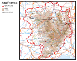 - Delimitação da área do Maciço Central como definido pela DIACT
