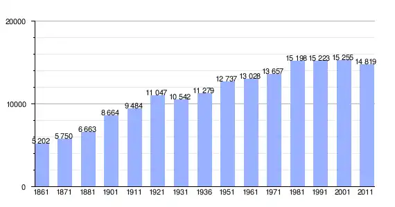 | Variação demográfica do município entre 1861 e 2011[3] |