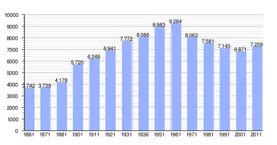 | Variação demográfica do município entre 1861 e 2011[3] |