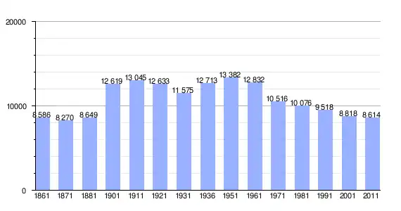 | Variação demográfica do município entre 1861 e 2011[3] |