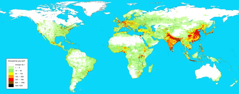 - Megacidade — corresponde ao centro urbano com mais de dez milhões de habitantes. Hoje, em torno de 21 cidades no mundo podem ser consideradas megacidades; destas, 17 estão em países subdesenvolvidos. No Brasil, apenas São Paulo e Rio de Janeiro enquadram-se na categoria. Nos últimos anos, tem-se verificado um notável crescimento das megacidades em países subdesenvolvidos, todas enfrentando sérios problemas, como a falta de saneamento básico, poluição, violência urbana e congestionamento, dentre outros.[15] Como exemplo, pode-se citar Mumbai, a cidade mais populosa da Índia, onde cerca de 55% da população vive em favelas.[16]