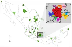 | Centro do México[11] | Centro e vale do México | Cidade do México, Puebla, Tlaxcala, Pachuca, Cuernavaca, Tula de Allende, Tulancingo e Cuautla | |||||||||
