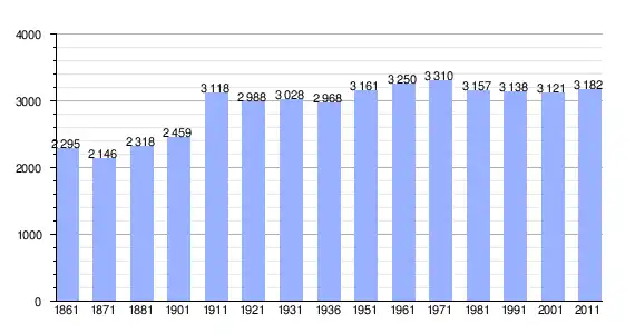 | Variação demográfica do município entre 1861 e 2011[3] |
