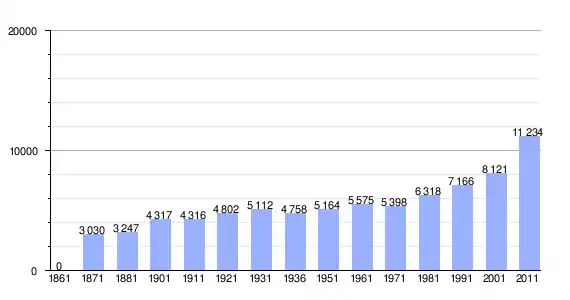 | Variação demográfica do município entre 1861 e 2011[3] |