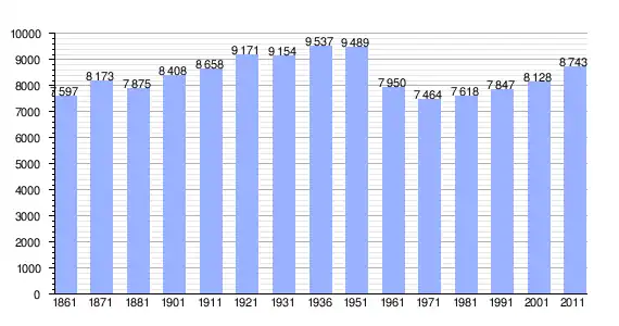 | Variação demográfica do município entre 1861 e 2011[3] |