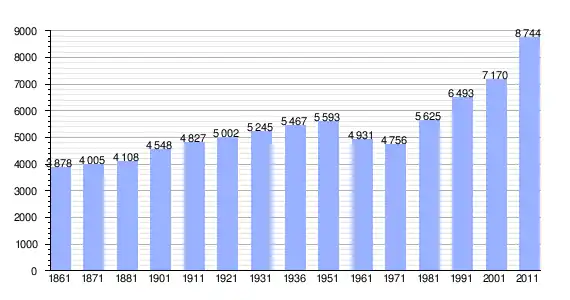 | Variação demográfica do município entre 1861 e 2011[3] |