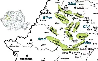 - Şimleu Mountains (Munţii Şimleu) , frequentemente considerada parte da caverna Transilvana Podişul Someşan