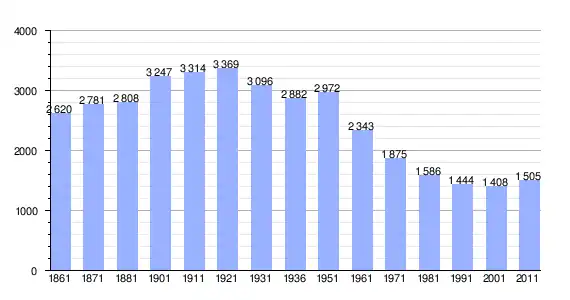 | Variação demográfica do município entre 1861 e 2011[3] |