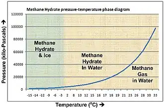 Em 2018, um artigo de perspectiva dedicado a pontos de inflexão no sistema climático sugeriu que a contribuição dos hidratos de metano para a mudança climática seria “insignificante” até o final do século, mas poderia chegar a 0,4 - 0,5 °C em escalas de tempo milenares.[123] Em 2021, o Sexto Relatório de Avaliação do IPCC não incluiu mais os hidratos de metano na lista de possíveis pontos de inflexão e afirma que “é muito improvável que as emissões de CH4 dos clatratos aqueçam substancialmente o sistema climático nos próximos séculos”.[124] O relatório também vinculou os depósitos de hidratos terrestres às crateras de emissão de gás [en] descobertas na Península de Yamal, na Sibéria, Rússia, a partir de julho de 2014,[125] mas observou que, como os hidratos de gás terrestres se formam predominantemente em uma profundidade abaixo de 200 metros, uma resposta substancial nos próximos séculos pode ser descartada.[124] Da mesma forma, uma avaliação de 2022 sobre pontos de inflexão descreveu os hidratos de metano como um “feedback sem limite” em vez de um ponto de inflexão.[40][126]