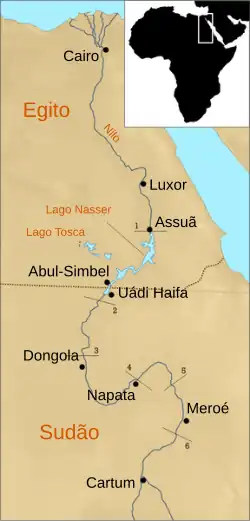 | Alguns monumentos da Núbia estão incluídos no sítio "Monumentos Núbios de Abul-Simbel a Filas", Património Mundial da UNESCO. |