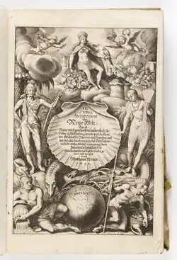 - ↑ Varnhagen, Amerígo Vespucci (1865: pp. 13–26) provides side-by-side reproductions of both the 1503 Latin version Mundus Novus, and the 1507 Italian re-translation "El Nuovo Mondo de Lengue Spagnole interpretato in Idioma Ro. Libro Quinto" (from Paesi Nuovamente retrovati). The Latin version of Mundus Novus was reprinted many times (see Varnhagen, 1865: p. 9 for a list of early reprints).