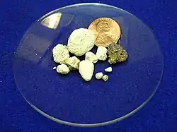 Rocha de fosfato, junto com um penny americano para demonstrar o tamanho.