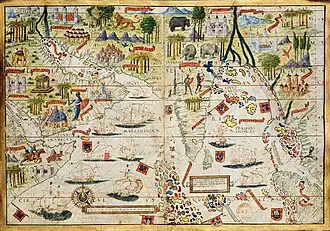 O oceano Índico é a terceira maior divisão oceânica do mundo, cobrindo aproximadamente 20% da água da superfície da Terra.[1] É limitada pela Ásia, incluindo a Índia, em que o oceano é chamado,[2][3][4] no norte, a oeste pela África, a leste pela Austrália, e ao sul pelo oceano Antártico (ou, dependendo da definição, por parte da Antártida).[5]
