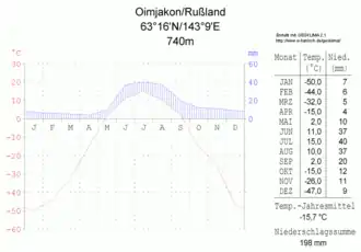 Oimiakon ou Oymyakon (em russo: Оймякон) é uma localidade do Leste da Sibéria (Federação Russa), junto ao Rio Indigirka, na República de Sakha, e tem cerca de 500 habitantes. Em seu curto verão, a temperatura pode chegar a 35 ºC positivos, entendendo-se que, juntamente às cidades russas de Verkhoyansk e Yakutsk, são as únicas cidades no mundo onde a amplitude térmica pode variar mais que 100 ºC.[1]