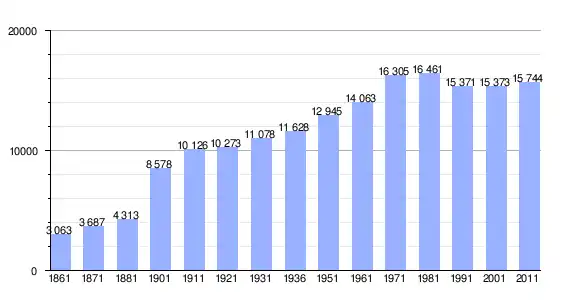 | Variação demográfica do município entre 1861 e 2011[3] |