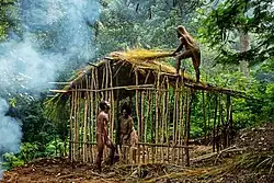 - ↑ Tekege, Martinus (2021). «ARSITEKTUR RUMAH ADAT LAKI-LAKI JAME OWAA SUKU MEE». Balai Arkeologi Papua - Kementerian Pendidikan dan Kebudayaan Indonesia. Jurnal Arkeologi Papua. 13 (1): 115–128. doi:10.24832/papua.v13i1.305. Consultado em 25 de julho de 2023. Cópia arquivada em 3 de julho de 2022