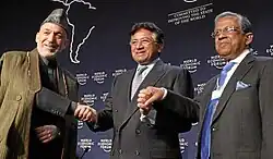 Em 2001 Musharraf autonomeou-se presidente, com a renúncia forçada de Rafiq Tarar. Após as eleições legislativas de 2002, Musharraf transferiu os poderes executivos para um recém-eleito primeiro-ministro, Zafarullah Khan Jamali. Em 15 de novembro de 2007, o mandato da Assembleia Nacional expirou, o que levou à constituição de um governo provisório chefiado pelo ex-presidente do Senado, Muhammad Mian Soomro. O assassinato em dezembro de 2007 de Benazir Bhutto reflete a instabilidade do sistema político paquistanês. Em setembro de 2008, Musharraf renunciou à presidência do país, que após eleições indiretas, elegeu Asif Ali Zardari, viúvo de Benazir Bhutto, como presidente. O governo paquistanês também se tornou um parceiro importante dos Estados Unidos na Guerra ao Terror, iniciada após os ataques de 11 de setembro de 2001.[29]