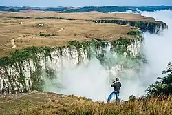O relevo da região é bastante particular, sendo caracterizado principalmente por desfiladeiros com paredões verticais de até 700 m de altura, onde abruptamente terminam os campos suavemente ondulados do planalto, como se estes tivessem sido "aparados".[6]
