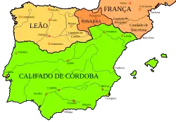 O movimento de conquista da península pelos reinos cristãos, também conhecido por Reconquista, inicia-se no século VIII[44] com a expansão a partir das Astúrias e na zona da Marca Hispânica (marca de fronteira), controlada pelos condados afetos ao Império Carolíngio até ao século X, e termina com a conquista do Reino Nacérida de Granada, em 1492.