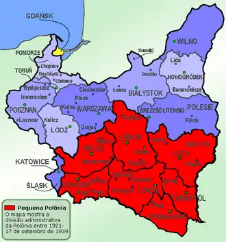 A Província da Pequena Polônia (prowincja małopolska) que consiste da Pequena Polônia propriamente dita, Podláquia, Rutênia Vermelha, Volínia, Podolia, Ucrânia, e a voivodia de Czernihów; capital: Cracóvia