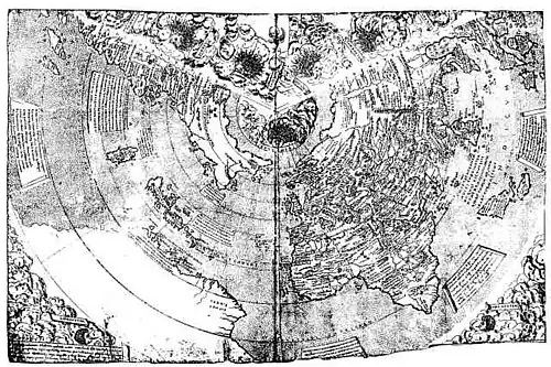 Trata-se de um planisfério de projeção cônica, em que os paralelos formam círculos concêntricos e os meridianos são linhas convergentes no Pólo Norte.