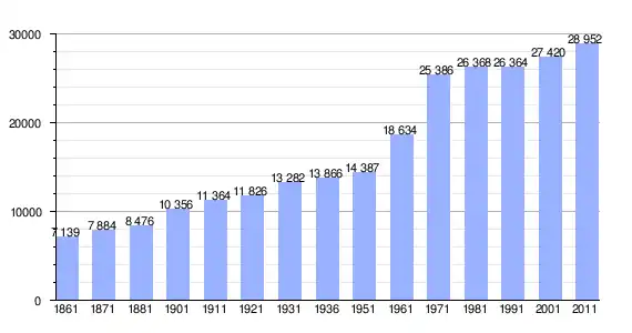 | Variação demográfica do município entre 1861 e 2011[3] |