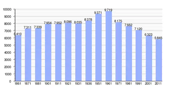 | Variação demográfica do município entre 1861 e 2011[4] |
