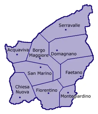Mapa dos municípios de São Marinho.