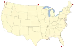 Para esta lista considerou-se o território continental na América do Norte, incluindo o Alasca e excluindo ilhas.