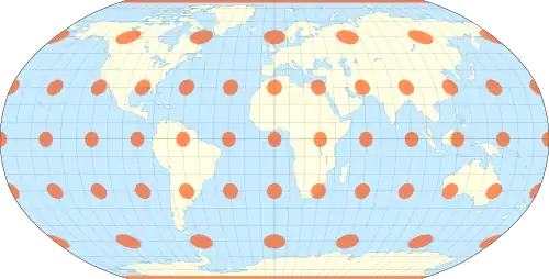 - ↑ Richardson, Robert T. (1989). «Area deformation on the Robinson projection». The American Cartographer. 16 (4): 294–296. doi:10.1559/152304089783813936