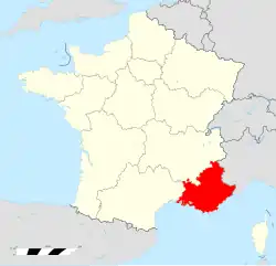 | Alpes-de-Haute-Provence Hautes-Alpes Alpes-Maritimes Bouches-du-Rhône Var Vaucluse | |