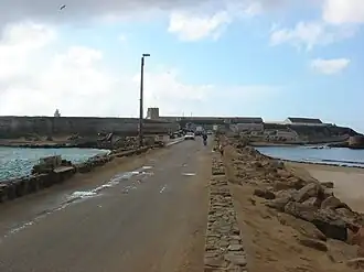 Fica numa antiga ilha, chamada isla de las Palomas, que entretanto se encontra unida ao continente.[2] Serve de divisória geográfica entre o Oceano Atlântico e o Mar Mediterrâneo (mais especificamente, do mar de Alborão), e fica frente ao centro urbano de Tarifa.